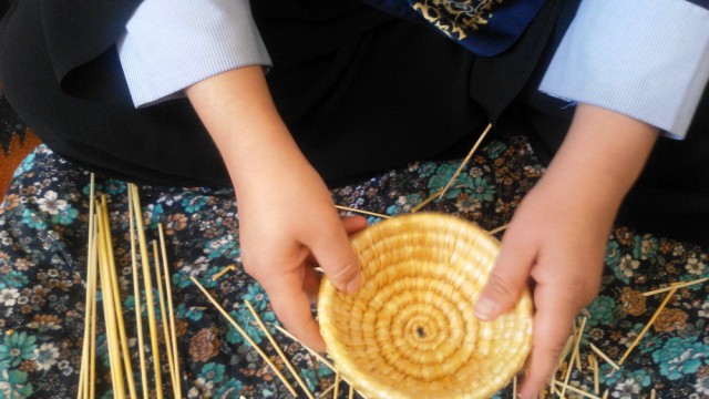 بدین گونه كه هنگام برداشت گندم، خوشهی گندم را با ساقه آن درو كرده، قسمت بند خوشه را كه دارای دانههای گندم است جدا میكنند . قسمت بدون بند جهت بافت سبد بكار میرود. باید پوست رویی ساقه را كنده و ساقهها را به مدت 48 ساعت در آب قرار میدهند تا كاملاً نرم، انعطاف پذیر و آماده برای بافت گردد .