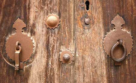 جنس چوب صندل دارد که با استخوان ترصیع شده اند. در ازاره تالار سنگ مرمر مرغوب