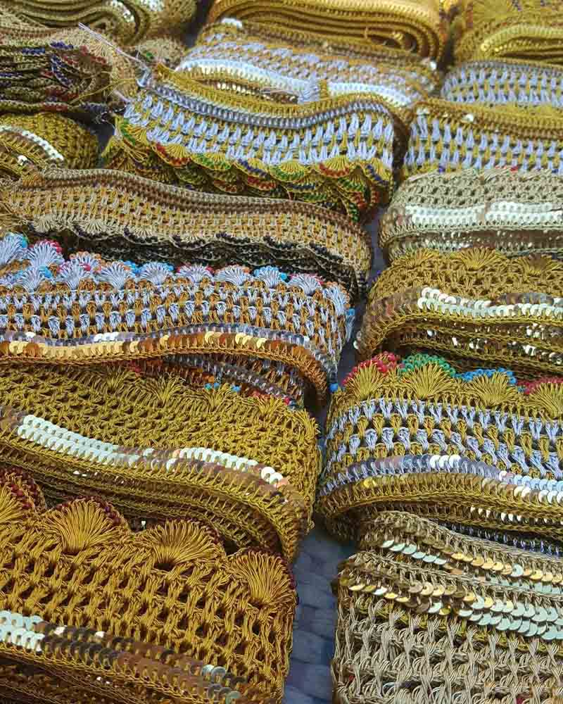 - تمام سطح کپوها را با کاموای رنگی میپوشانند و حصیر دیده نمیشود.